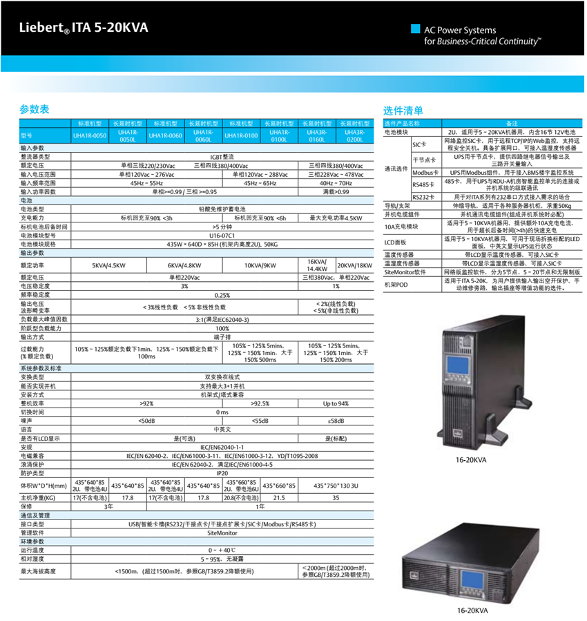 ITA 系列 UPS 功率范围: 1-20K (*新推出)