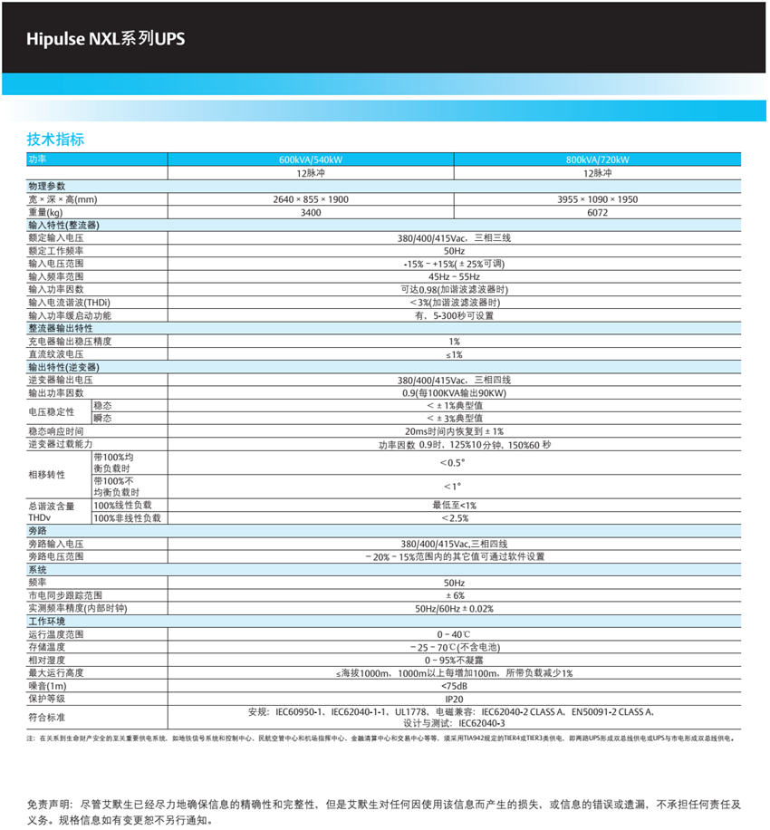 主要技术特点 < 在线式双变换设计,完全隔离市电及油机可能存在的各类电网污染及电网故障对负载的影响; < 输出功率因数提升至0.9,更
