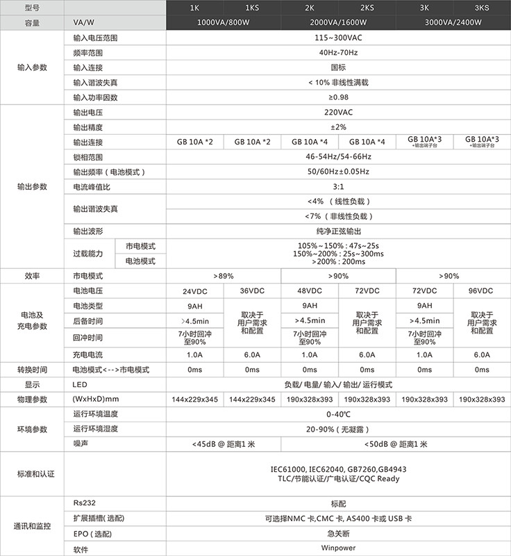 *高效率电气设计,在线模式下效率高达90%,节省运行费用,