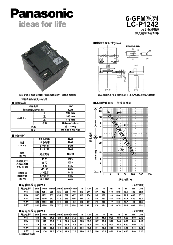 LC-P系列---后备浮充使用普通品 用途:大、中、小型UPS、通讯领域、医疗设备、安全系统等 特点:浮充期待寿命6年(25℃)/10年(20℃); 更高比能量; 采用优质阻燃材ABS槽壳,符合UL94V-0标准,降低壳体燃烧可能; 优质板栅合金、独特生产工艺,增强板栅抗腐蚀能力,延长产品使用寿命。